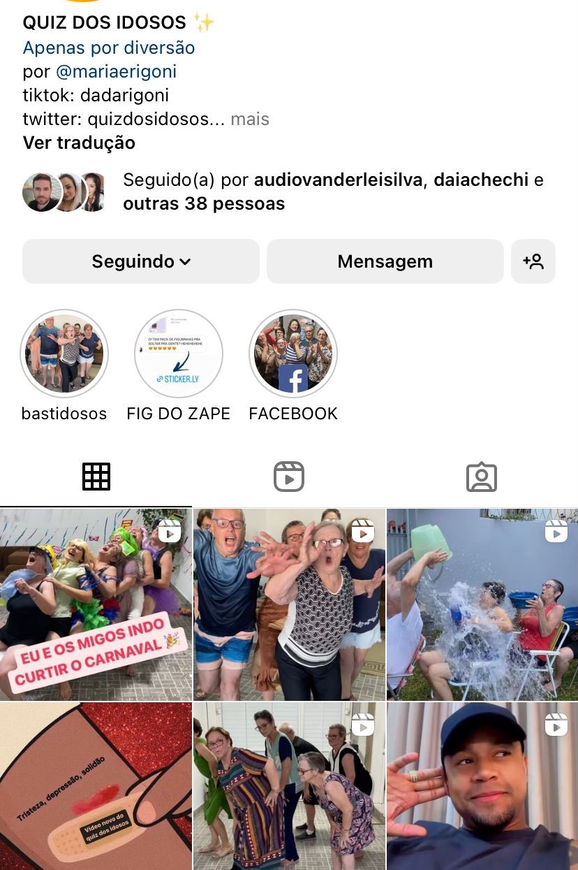 Após alguns pedidos, a jovem criou uma conta também no Instagram e Facebook e se tornou a administradora das redes sociais e produtora, já que o grupo não tem tanto domínio na internet. O nome de usuário é o que fez o sucesso acontecer – “Quiz dos Idosos”.