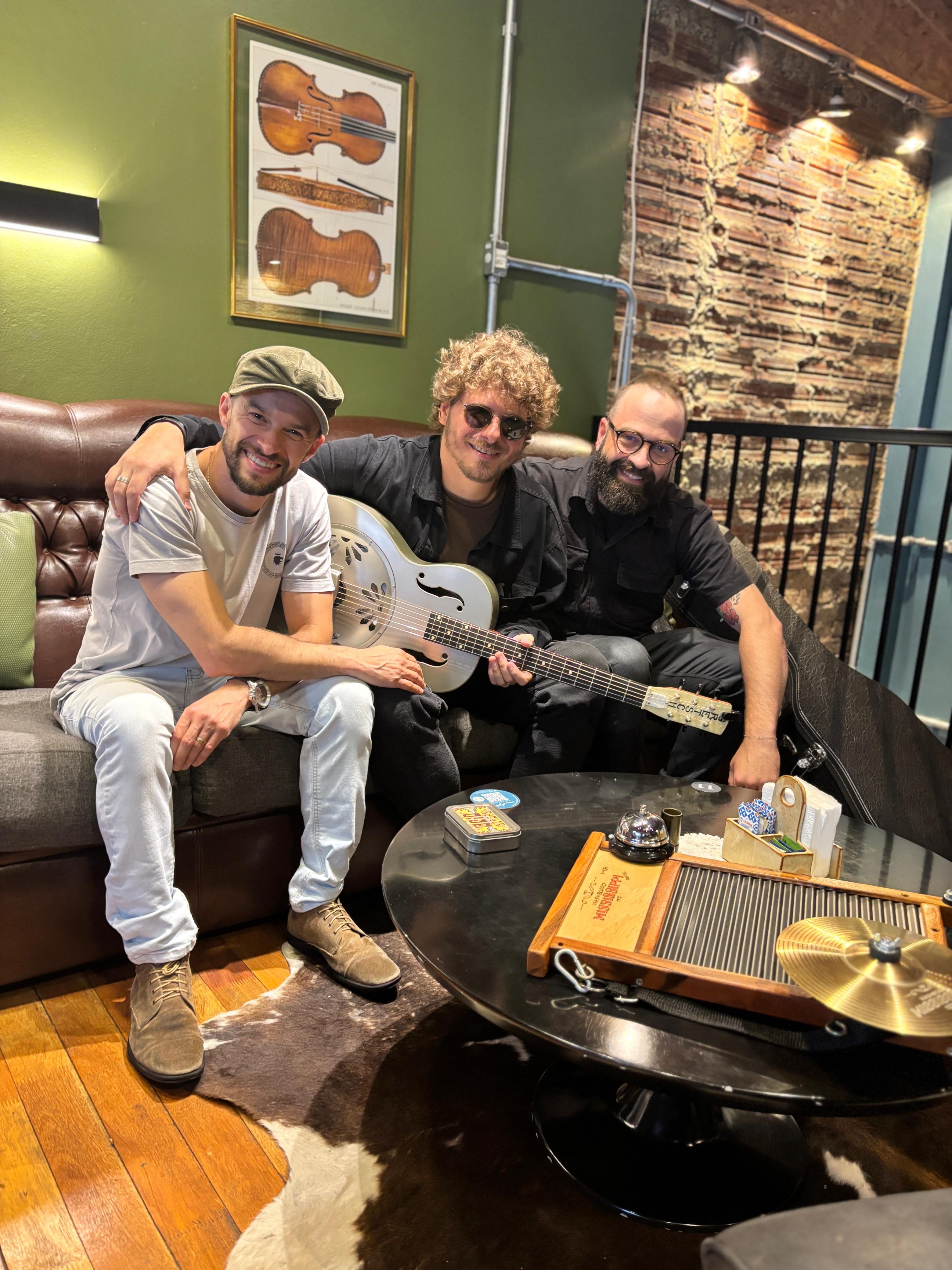 Entre cafés e risadas, a conversa sobre música segue sem pressa. O encontro reúne trajetórias que começaram distantes — geograficamente e virtualmente — e que, aos poucos, se aproximaram pelo mesmo caminho: o blues.