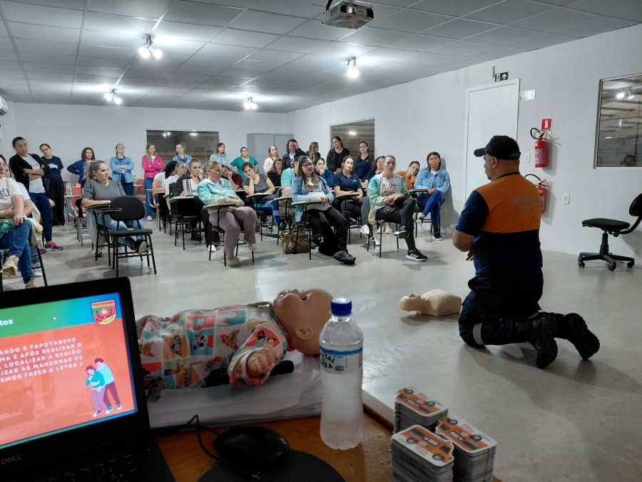 Durante o treinamento, foram repassadas orientações práticas sobre como agir em casos de engasgamento, parada cardiorrespiratória, desmaios e outros tipos de emergências, reforçando a importância de respostas rápidas e corretas que podem salvar vidas.
