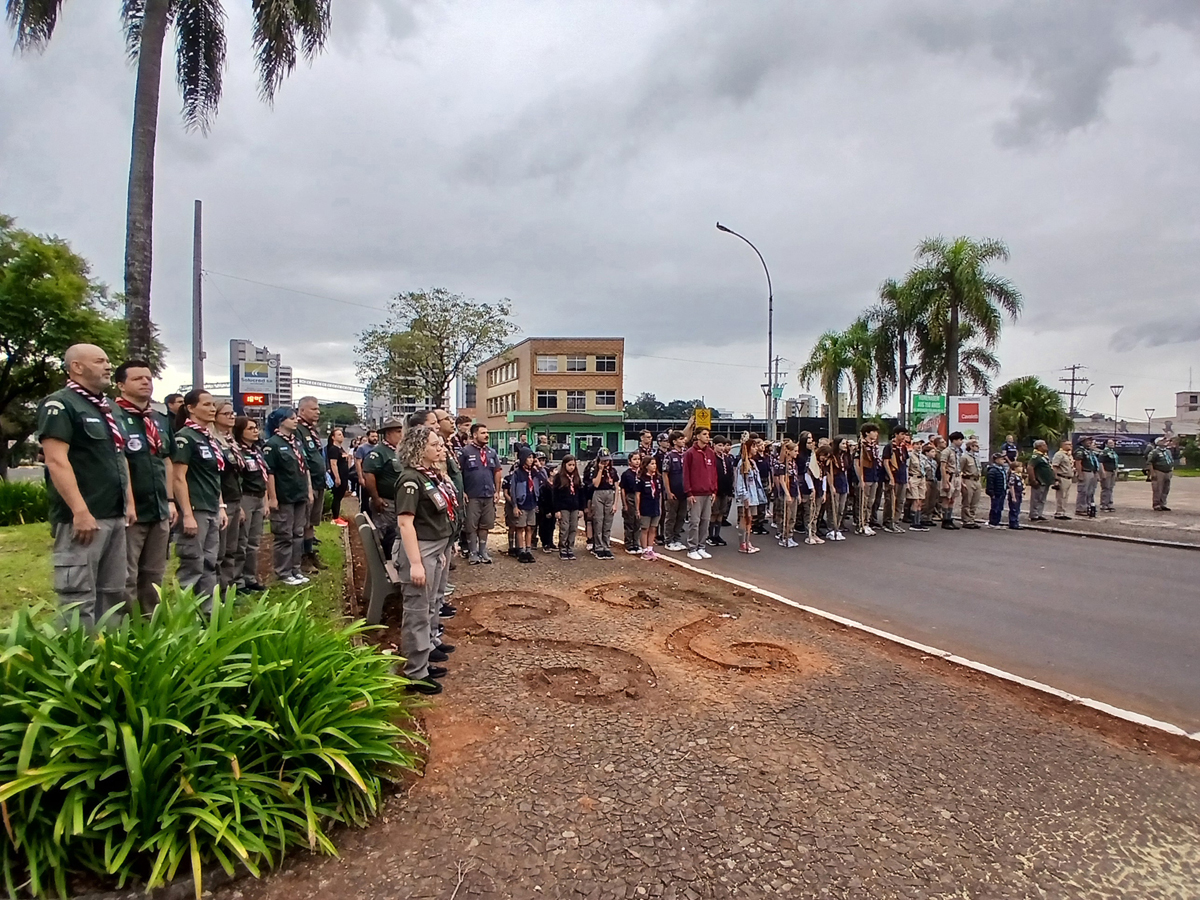 Durante a cerimônia, também foi realizada a deposição de uma coroa de flores em homenagem ao patrono, conduzida por escoteiros e acompanhada por autoridades locais, em um gesto de reverência à memória histórica e aos ideais de liberdade e soberania nacional.